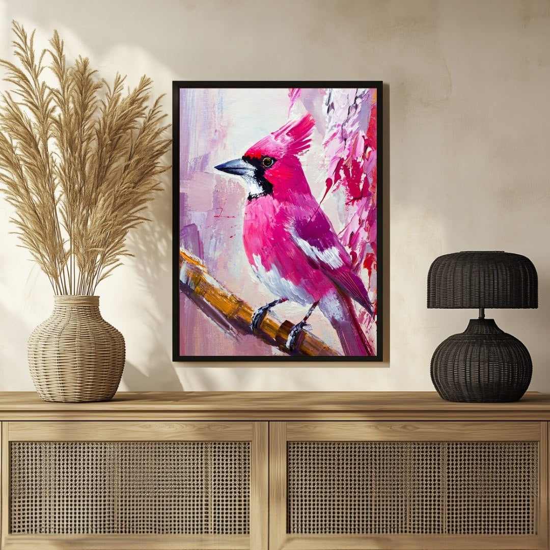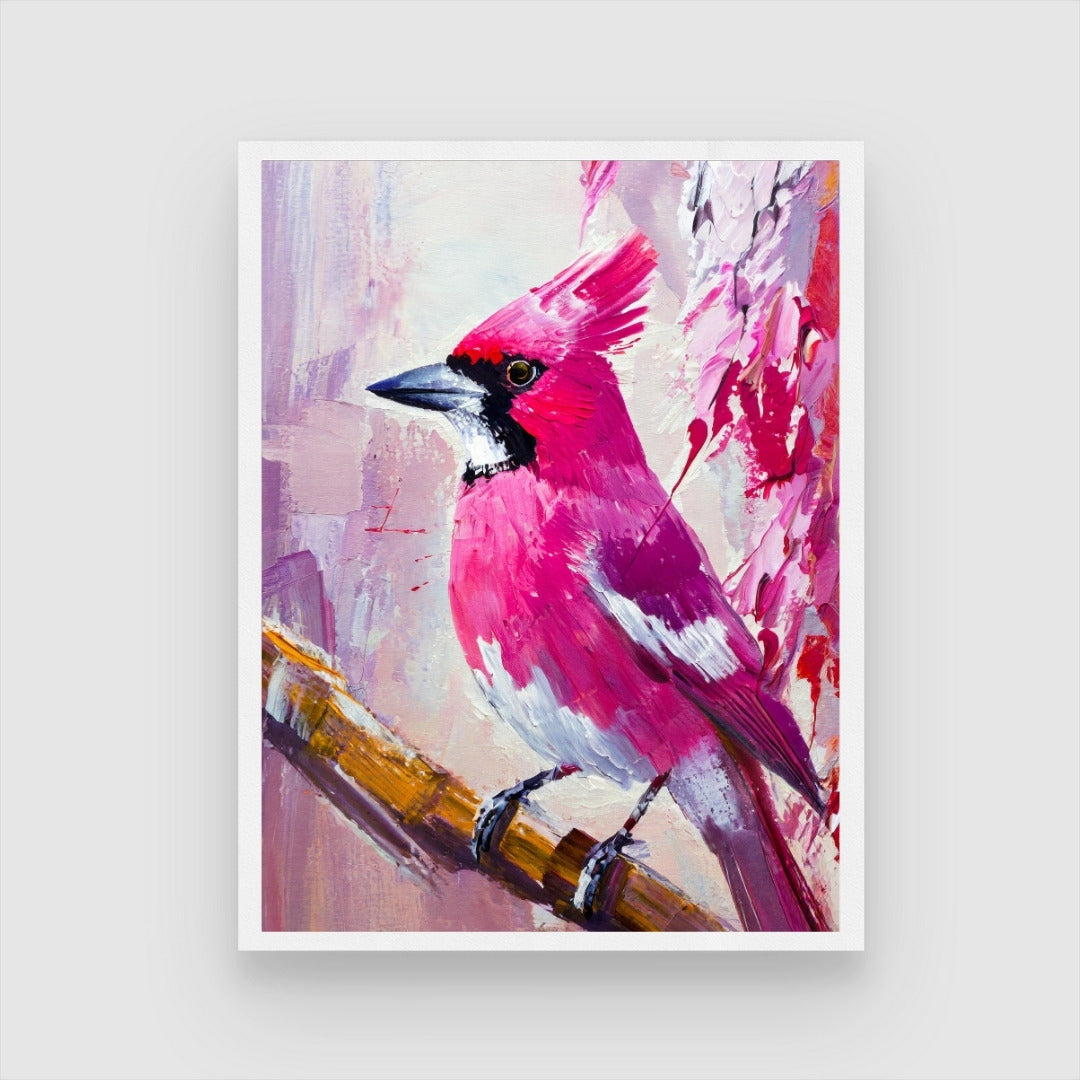 Pink Jay-Bird Abstract Painting - Artistic Canvas Wall Art