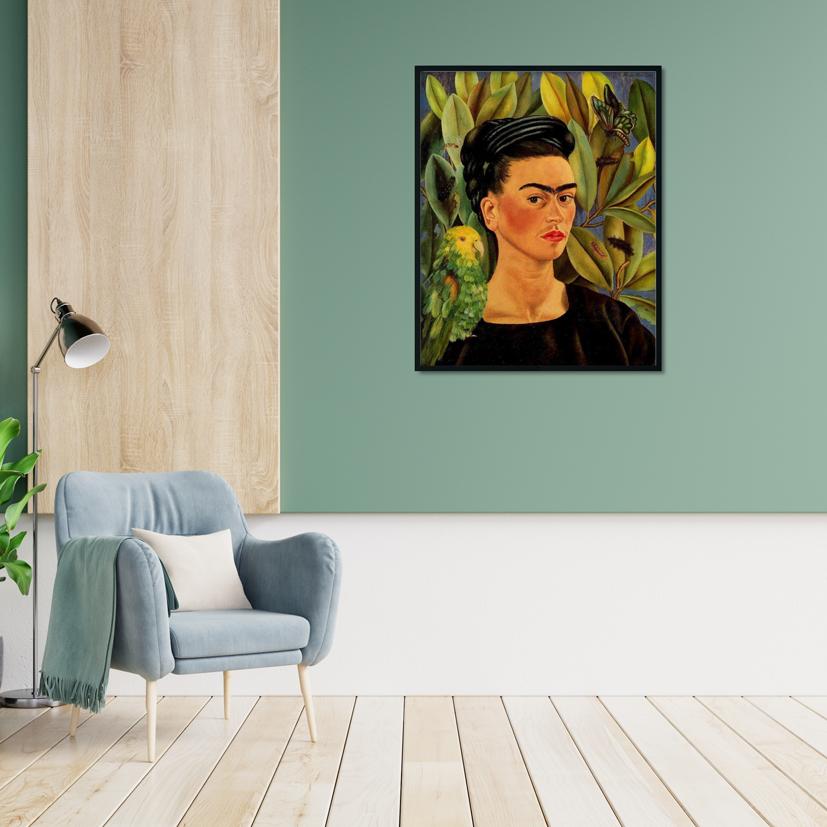 Self portrait with Monkey and Parrot Painting - Meri Deewar