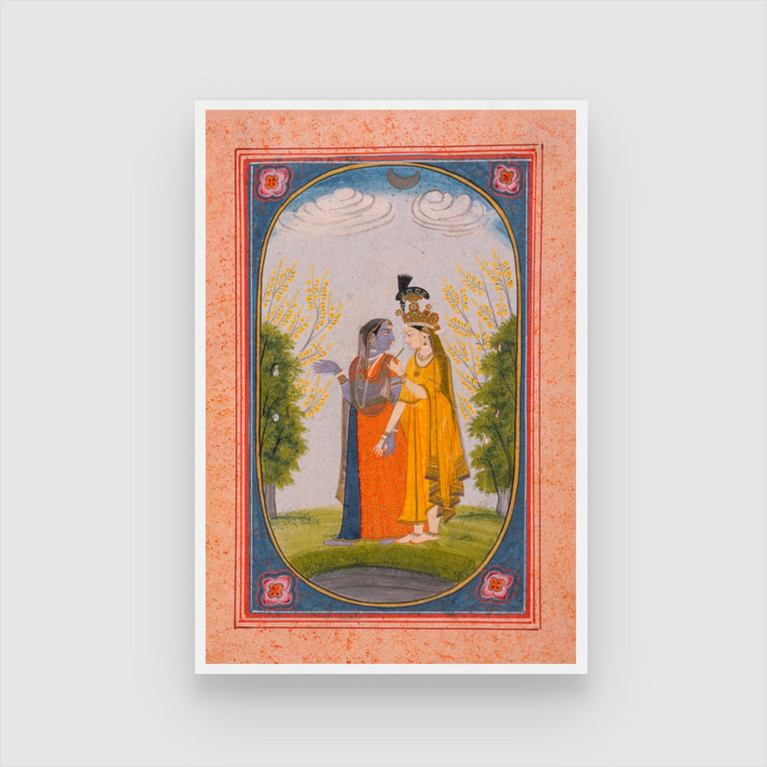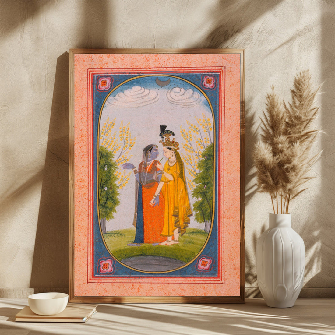 Radha Krishna Mughal Miniature Painting - Meri Deewar