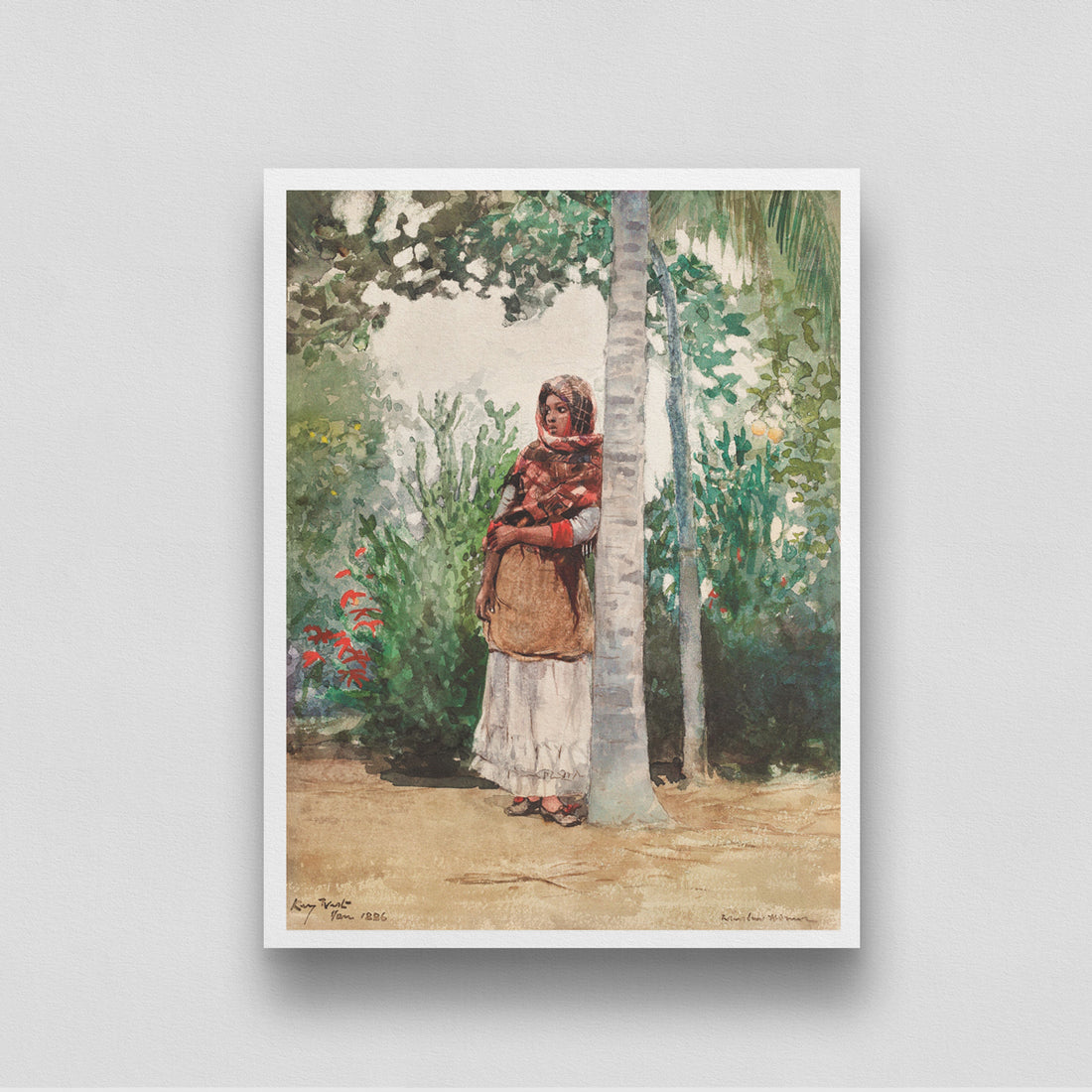 Sad Woman in Shawl Under a Palm Tree Poster by Winslow Homer