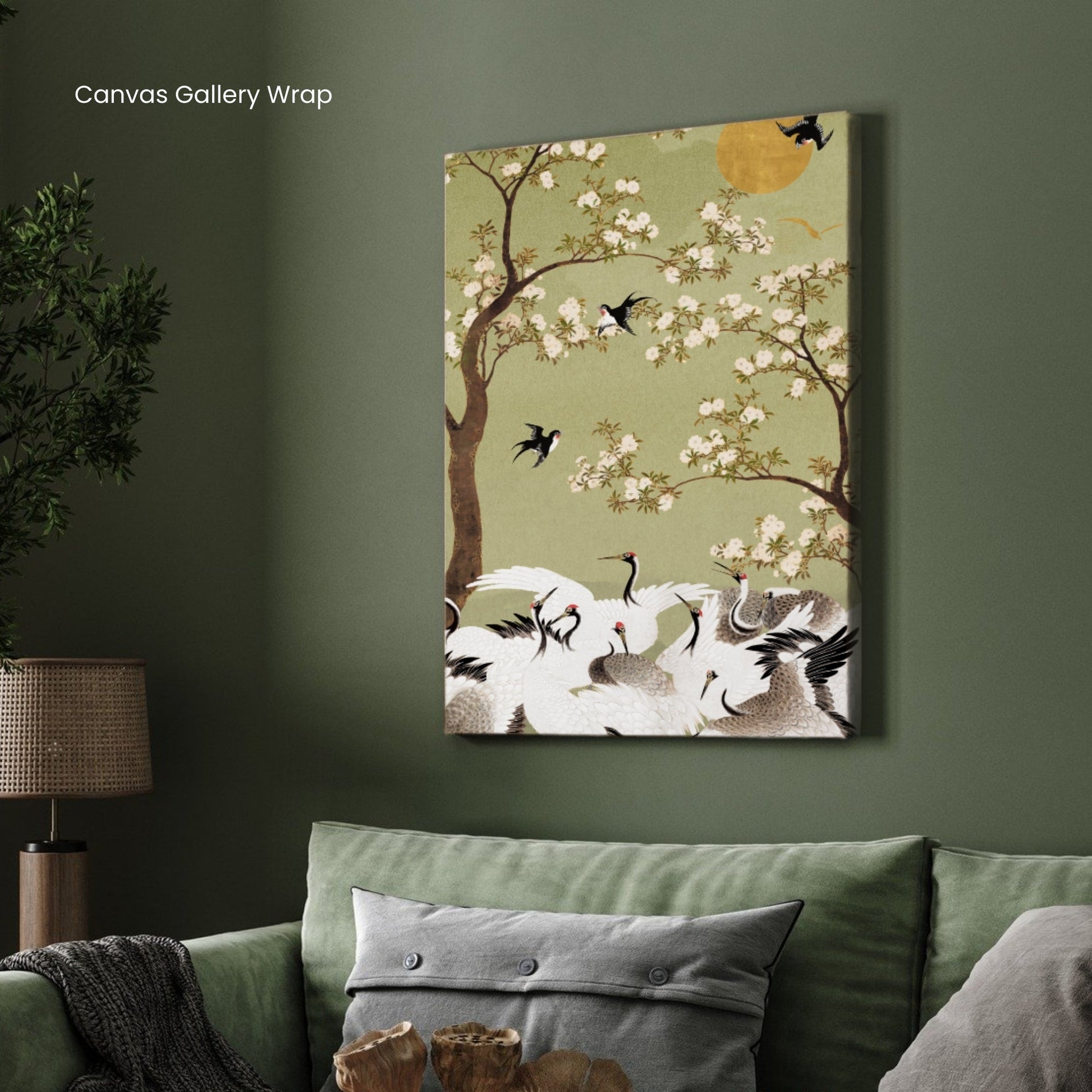 Cranes & Cherry Blossoms — Oriental Crane Wall Painting