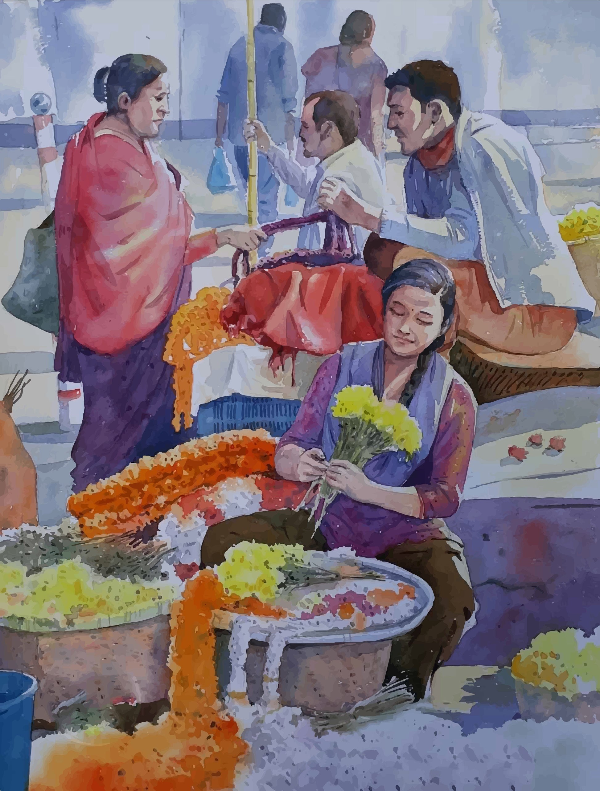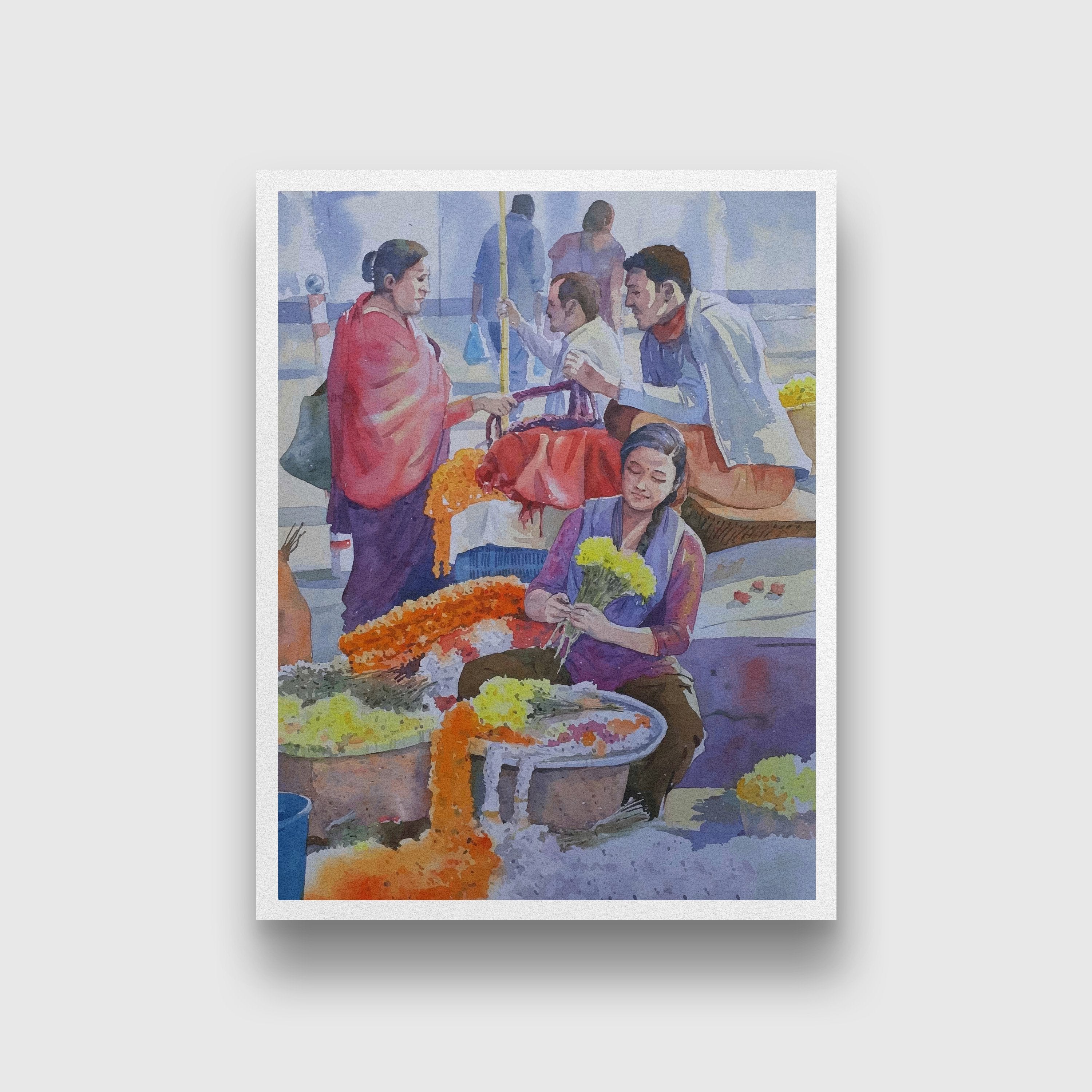 Flower market Kolkata Painting - Meri Deewar