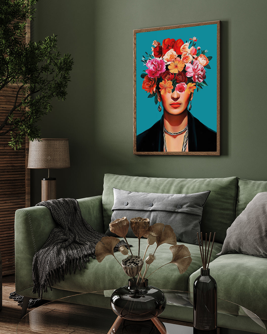 Frida Kahlo Portrait with Flowers Painting
