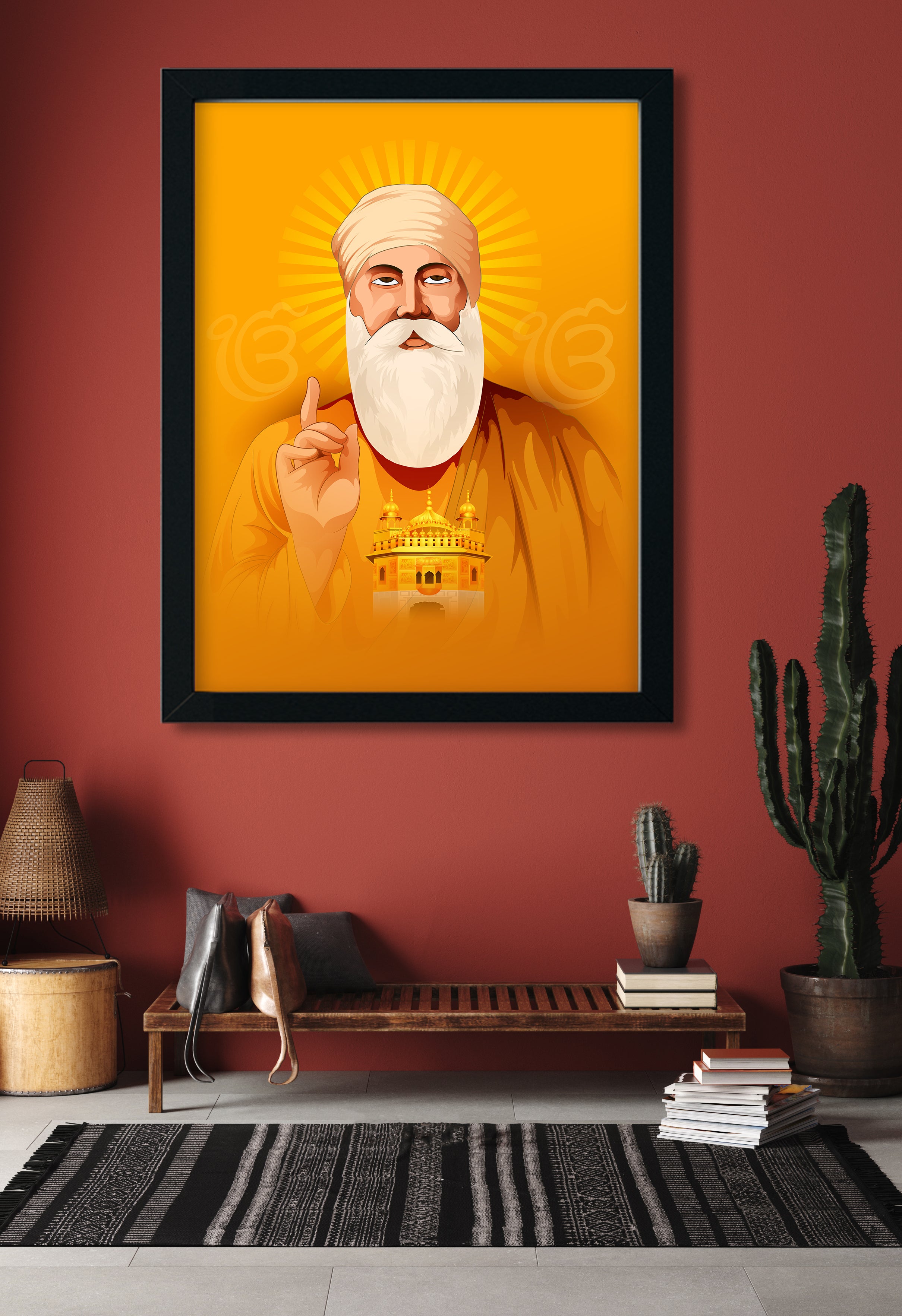 Guru Nanak Ji Painting 3 : 4 Vertical Premium Wall Art Canvas by MeriDeewar