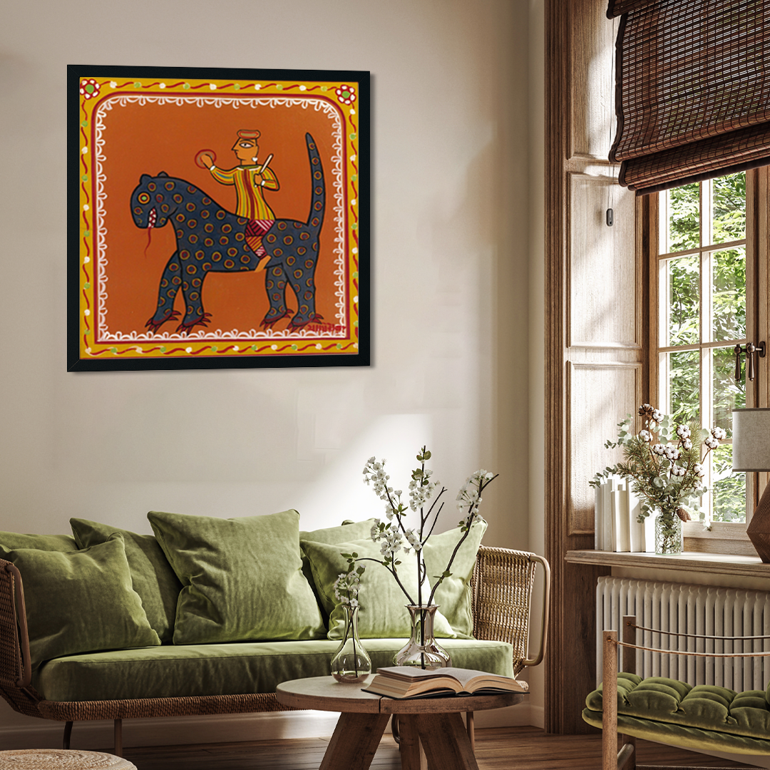 Man on a Beast Jamini Roy Painting