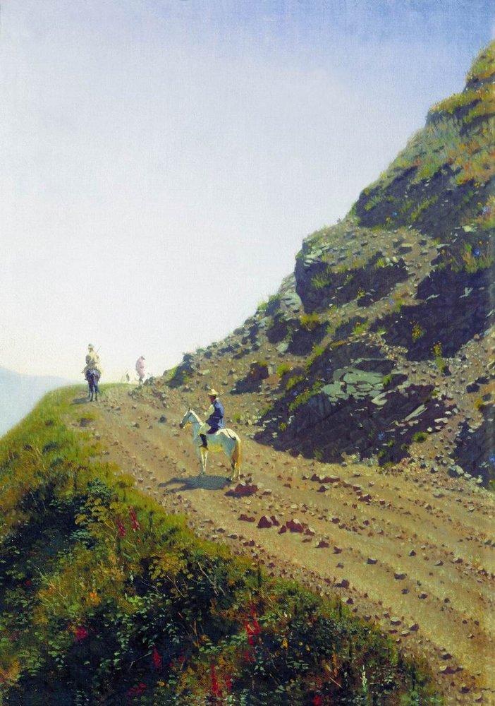 nomadic road in the mountains of ala tau Painting - Meri Deewar