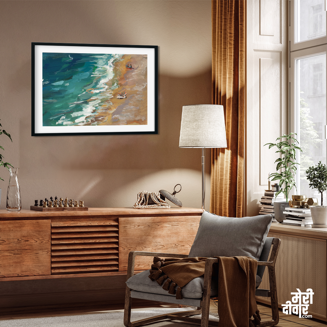 Sea Beach View From Gouache Painting