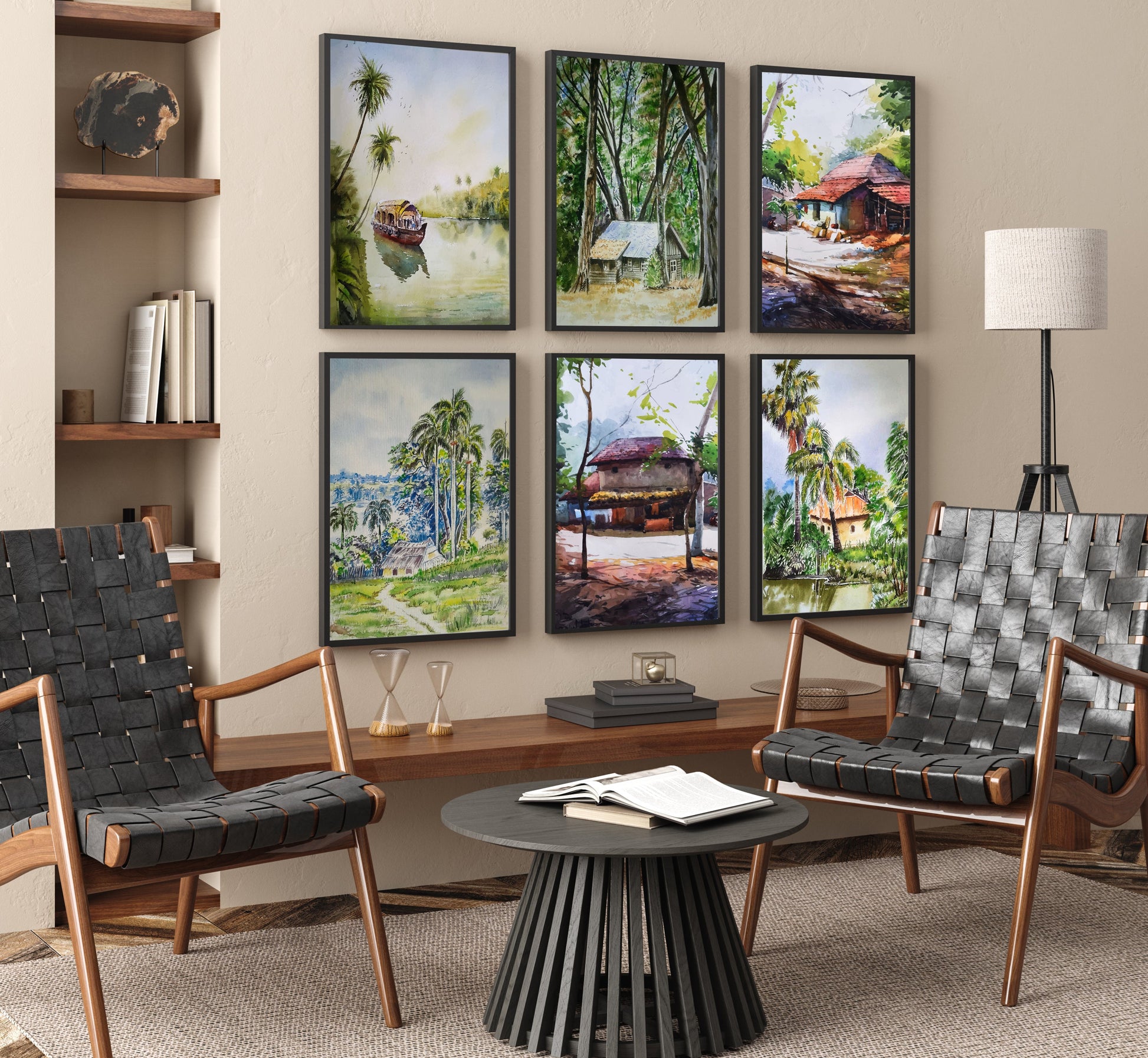 Shades of Nature Watercolor Paintins Wall Art Set Of 6