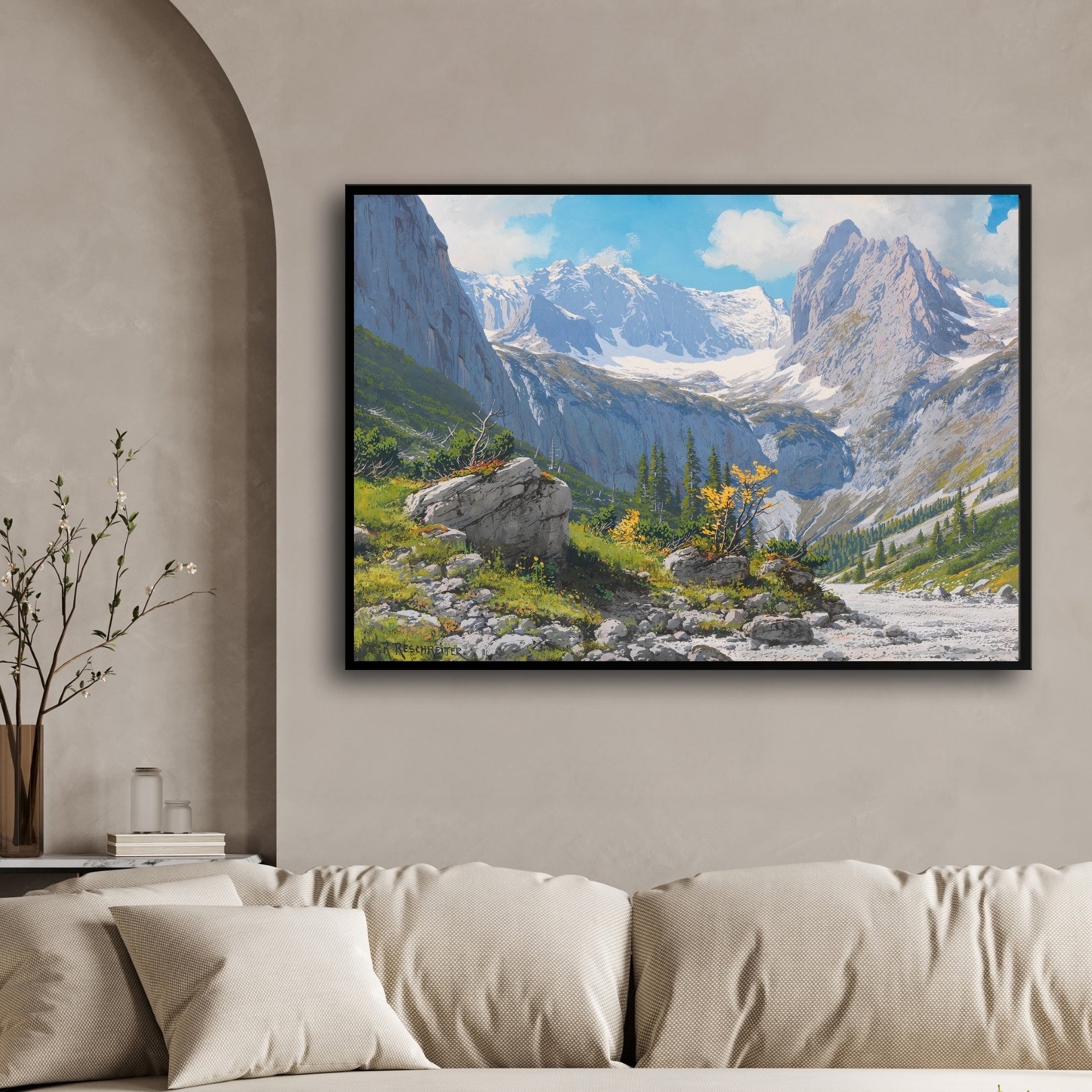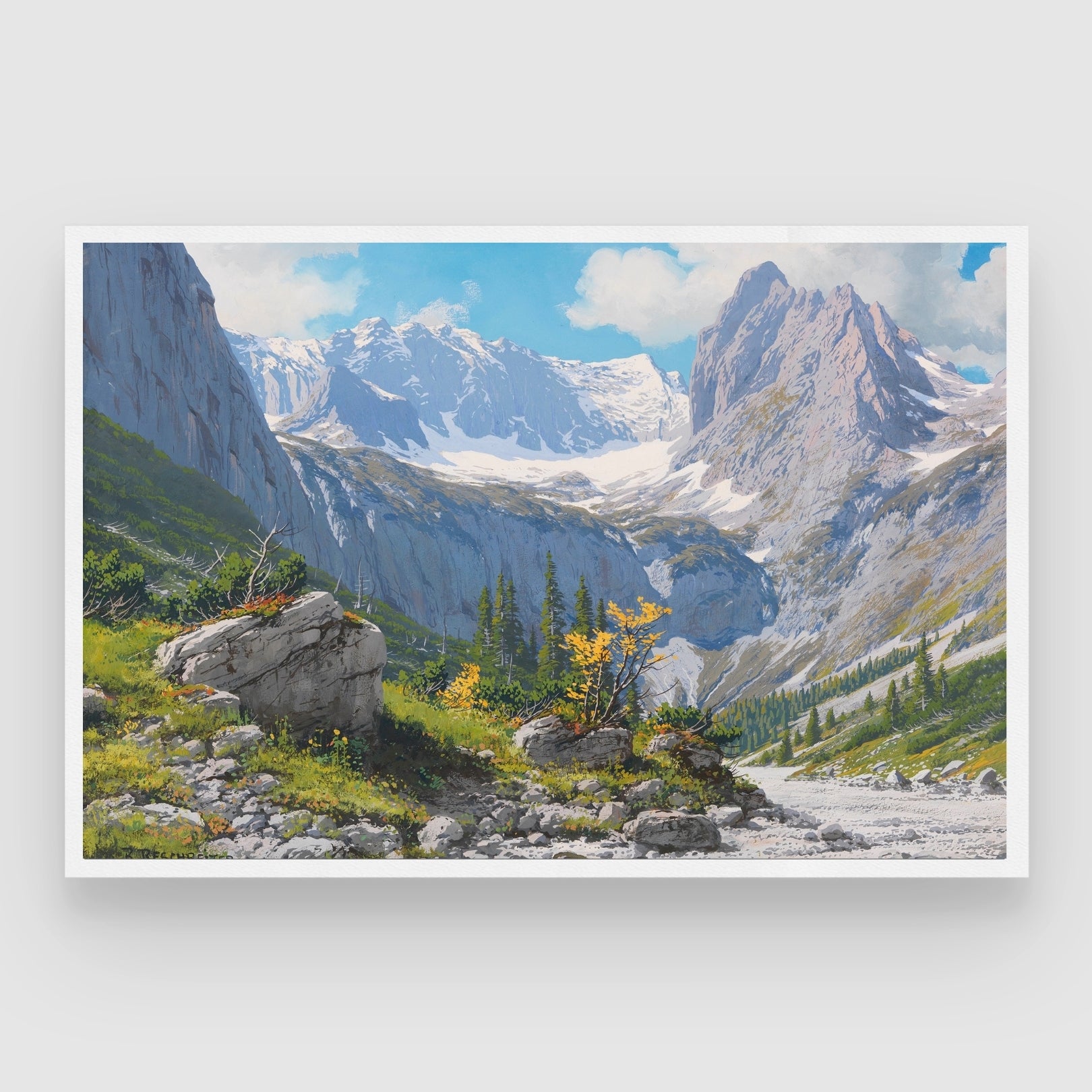 Snowy Peaks & Rocky Valley Landscape Wall Art