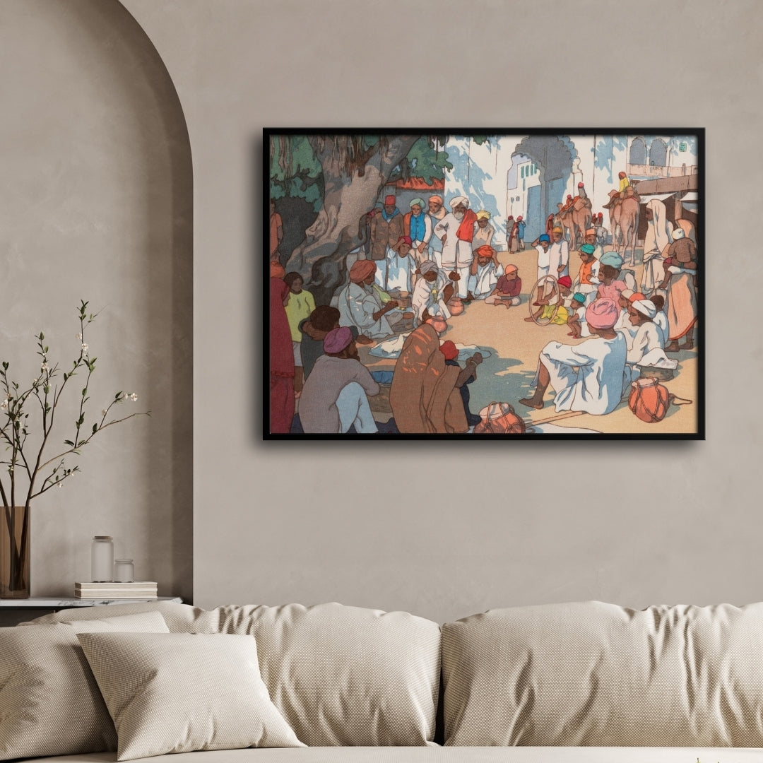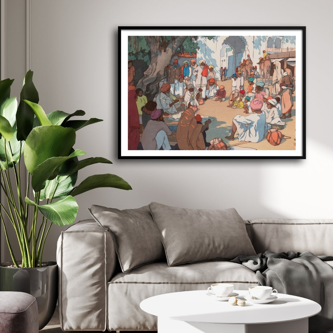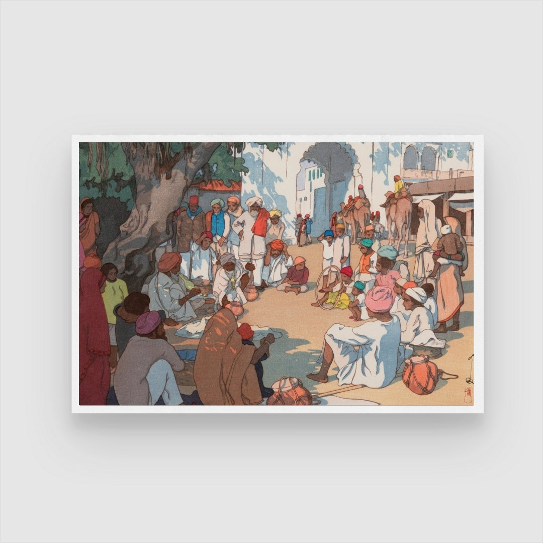 Village Gathering in India – Yoshida Hiroshi Japanese Woodblock Print