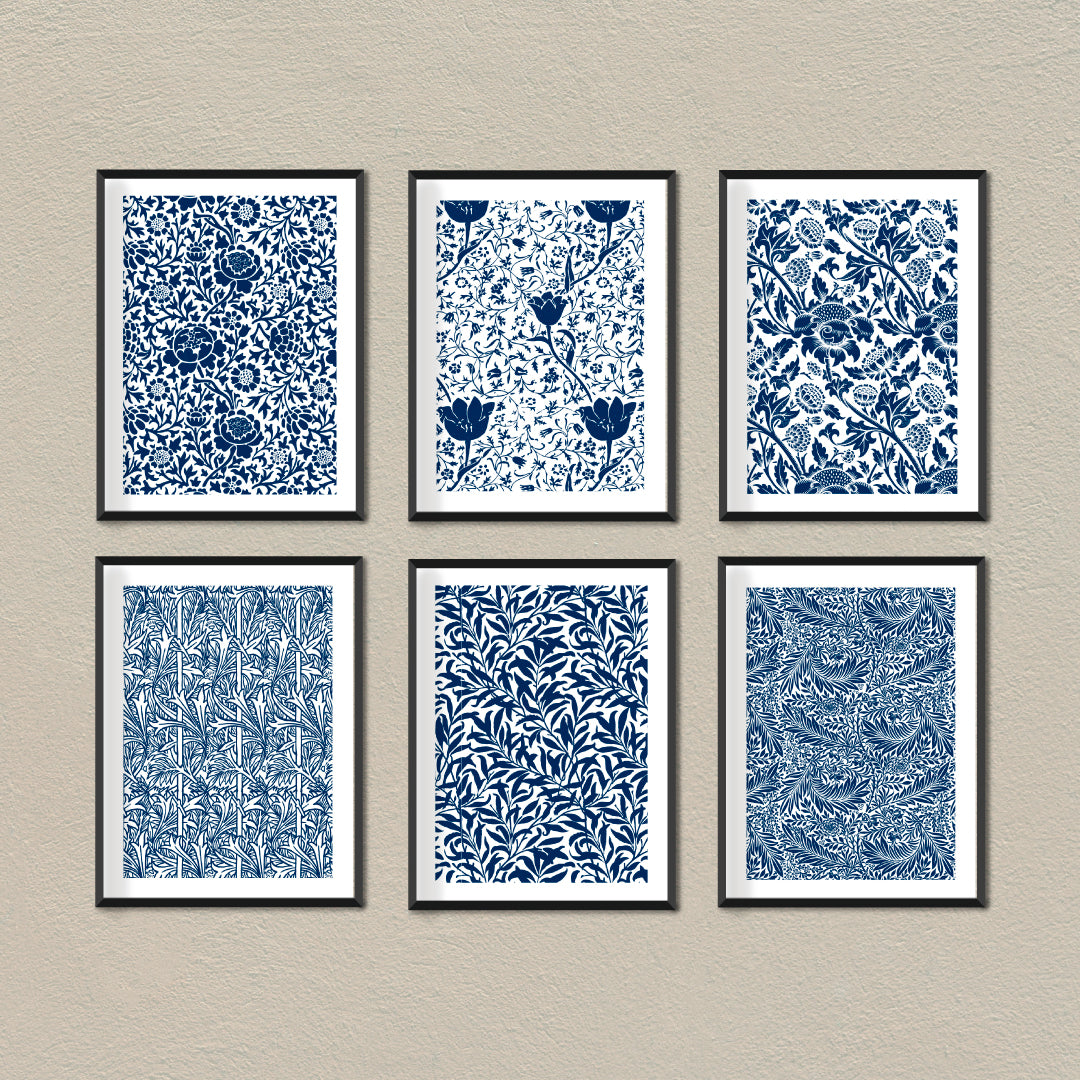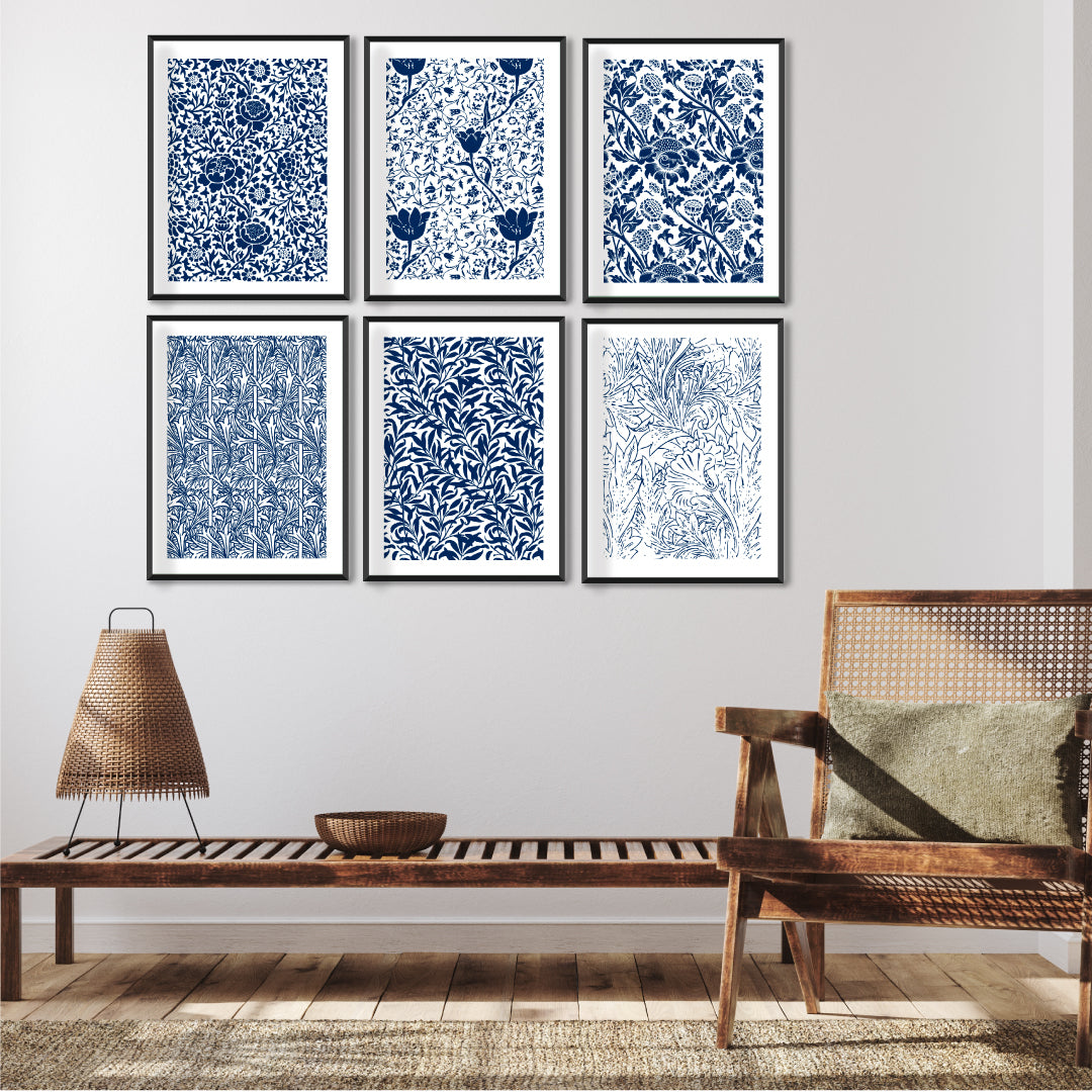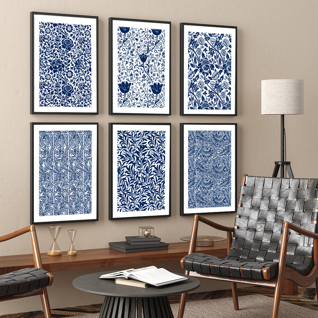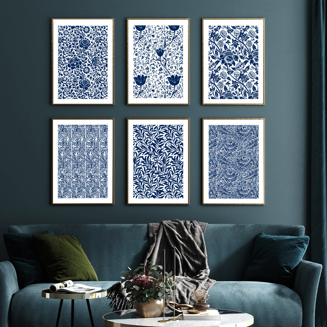 Navy Blue Botanical Wall Art Set Of 6 Paintings